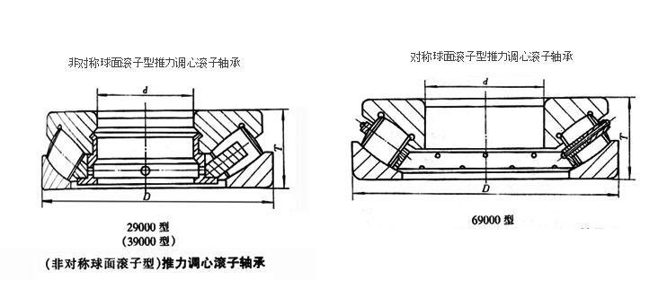 推力調(diào)心滾子軸承與調(diào)心滾子軸承同樣,座圈滾道面是以與軸承中心軸上一致的點(diǎn)為中心的球面,該類(lèi)軸承滾子為球面型,因此,具有自動(dòng)調(diào)心功能,對(duì)同軸度和軸的撓曲不甚敏感。